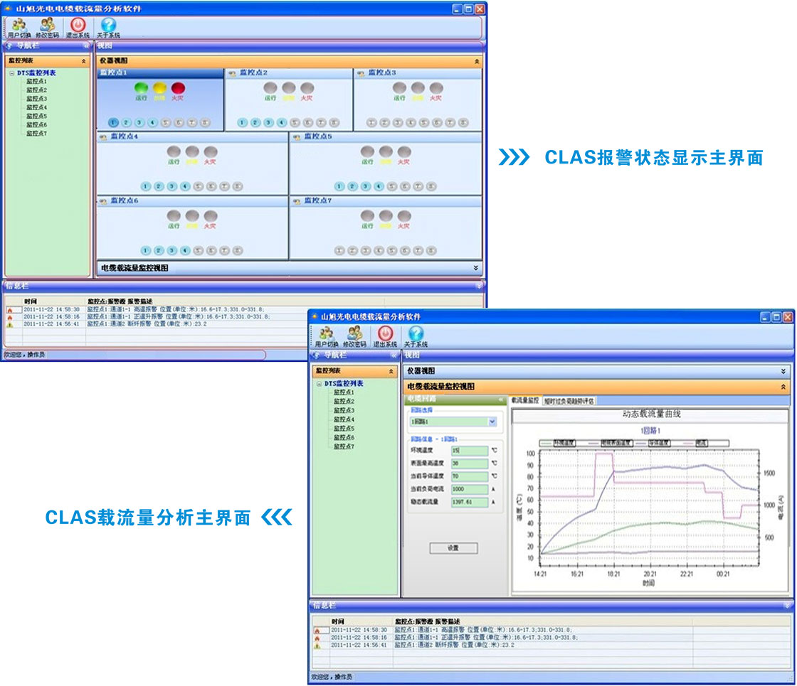 山旭光电电缆载流量分析软件(简称CLAS软件),它基于先进的DTS分布式光纤测温技术,可以实时、全范围监测电缆表面温度,采用国际电工委员会标准IEC60287、IEC60853算法模型实时计算导体温度和动态载流量,为电缆的安全监控和负荷管理提供了有效帮助。CLAS软件具有良好的扩展性,可与其他开放性现场设备进行无缝连接,实现实时数据显示以及报警显示等功能。